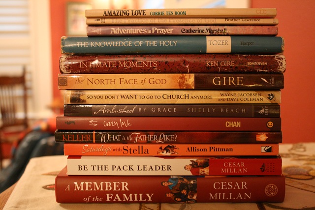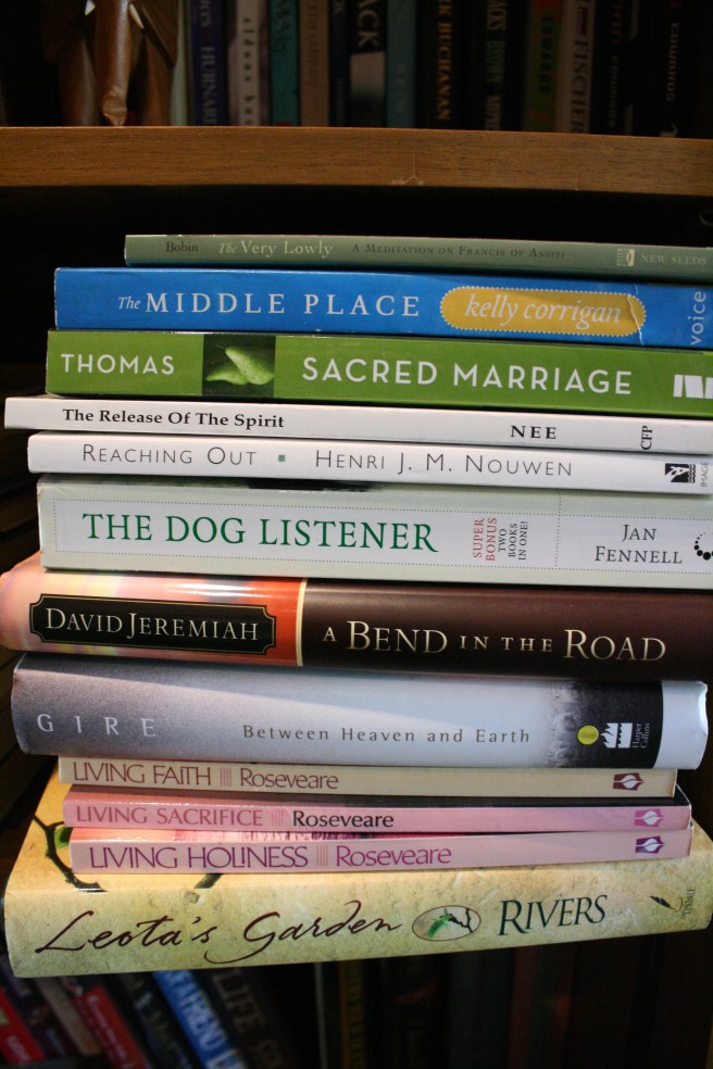 The best ones out of this stack would be Sacred Marriage, Reaching Out and Dad’s three Roseveare books. Of course anything Francine Rivers writes is good.