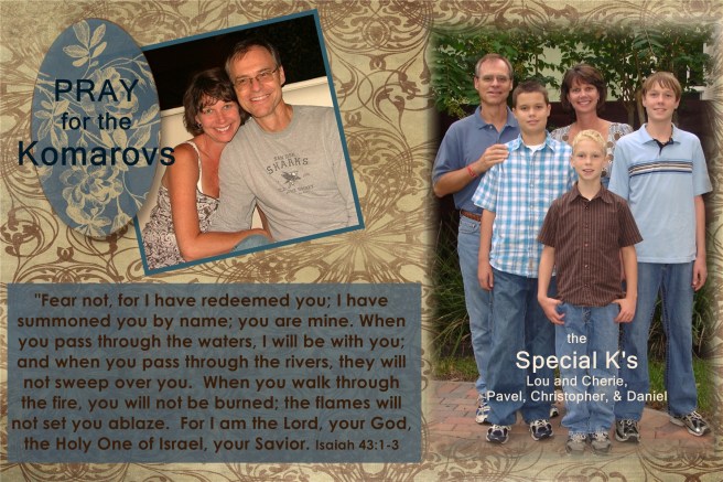 Please know that your Special K’s… Cherie, Pavel, Christopher and Daniel are being loved on by family and friends. There will be hard days ahead but they will not be alone and they will be ok.