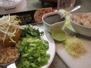 We love Thai food, so Friday night I decided to make a Shrimp Pad Thai recipe Amber had given me. The original recipe comes from Cooking Light, but she changed it up a bit. Warning… if you like bland food you will not like the wonderful burst of flavors in every bite of this dish.