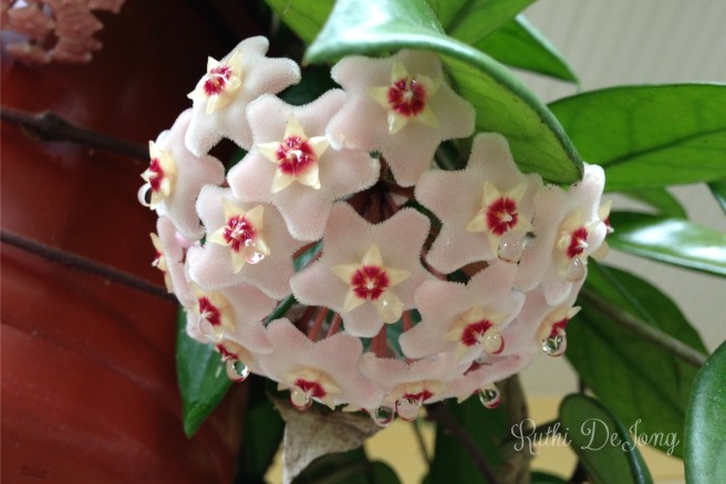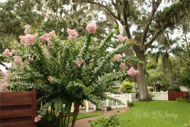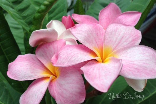 After this morning’s rain shower, I needed a break from my to-do list so I took a little walk around the yard. I love it after it rains. Everything is clean and fresh. It also seemed that most things blooming right now in our yard, are pink; the crepe myrtles, zinnias, hoyas, frangipani, my newest blooming orchid and even Mom’s ground orchid. So fitting since we are crazy with excitement about a sweet baby girl who will be joining our family any day now.