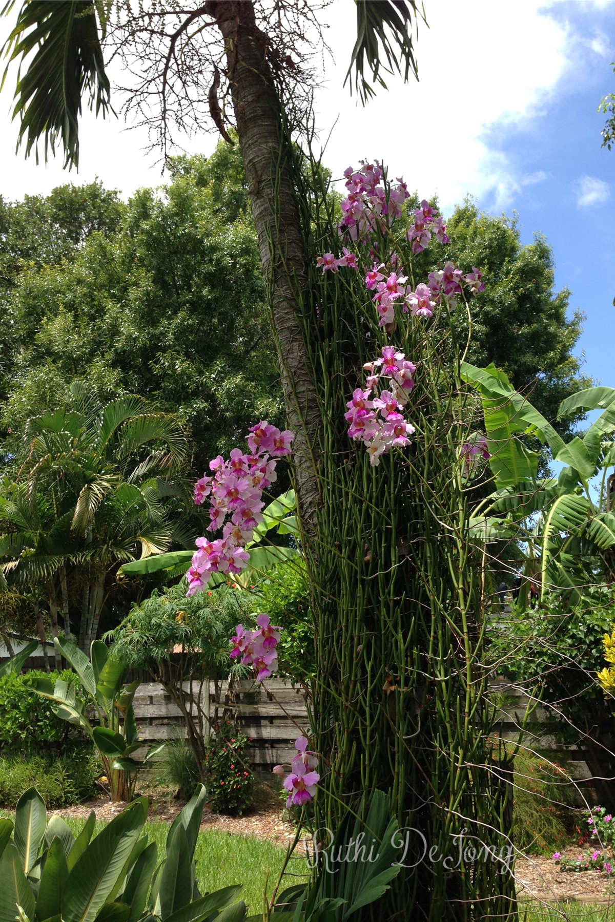 After this morning’s rain shower, I needed a break from my to-do list so I took a little walk around the yard. I love it after it rains. Everything is clean and fresh. It also seemed that most things blooming right now in our yard, are pink; the crepe myrtles, zinnias, hoyas, frangipani, my newest blooming orchid and even Mom’s ground orchid. So fitting since we are crazy with excitement about a sweet baby girl who will be joining our family any day now.