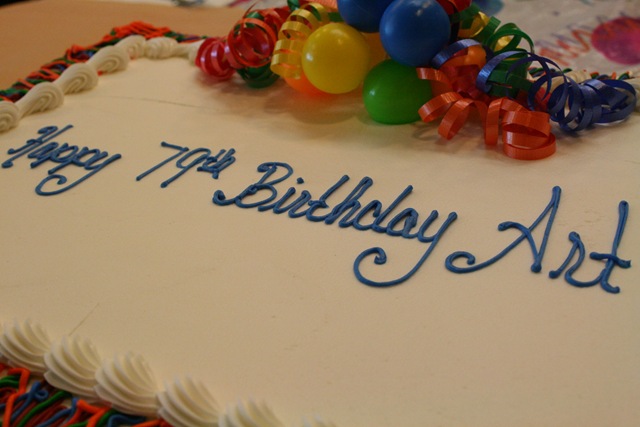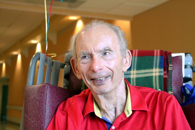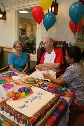 On Thursday, his actual birthday, Mom and I brought in balloons and a sheet cake so Dad could celebrate with the other residents in the dining room at lunch time.