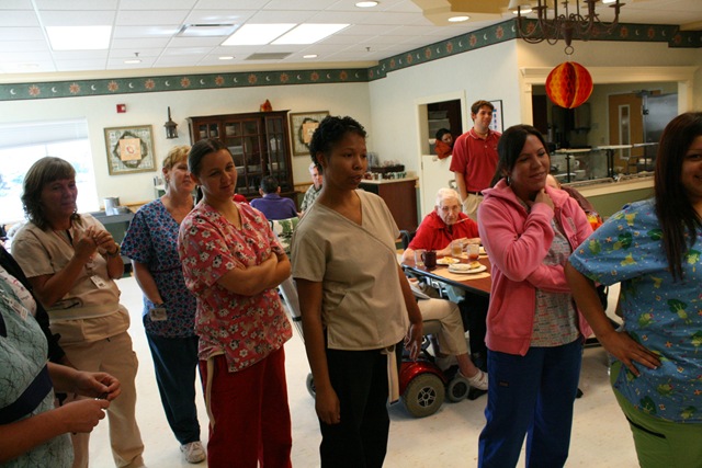 Alisha, Dad’s first daytime aide, who took very good care of him and made our first 3 months there a little easier. She is now working on a different hall, but from time to time comes and talks with Dad.