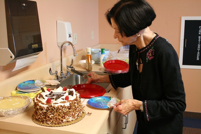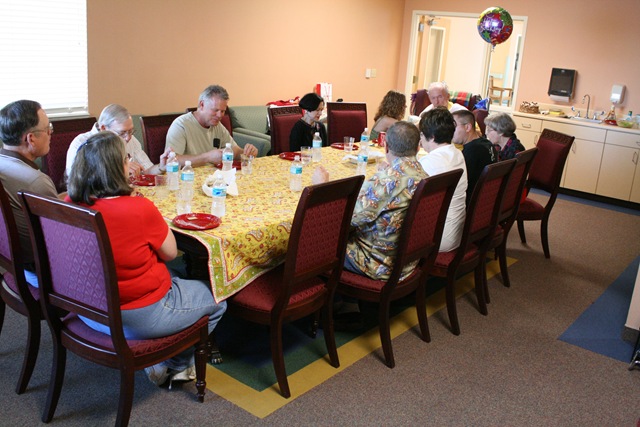 On Saturday, we invited a few friends to come have lunch with Dad. We were able to use a nice private dining room and brought in a variety of salads and desserts, of course!
